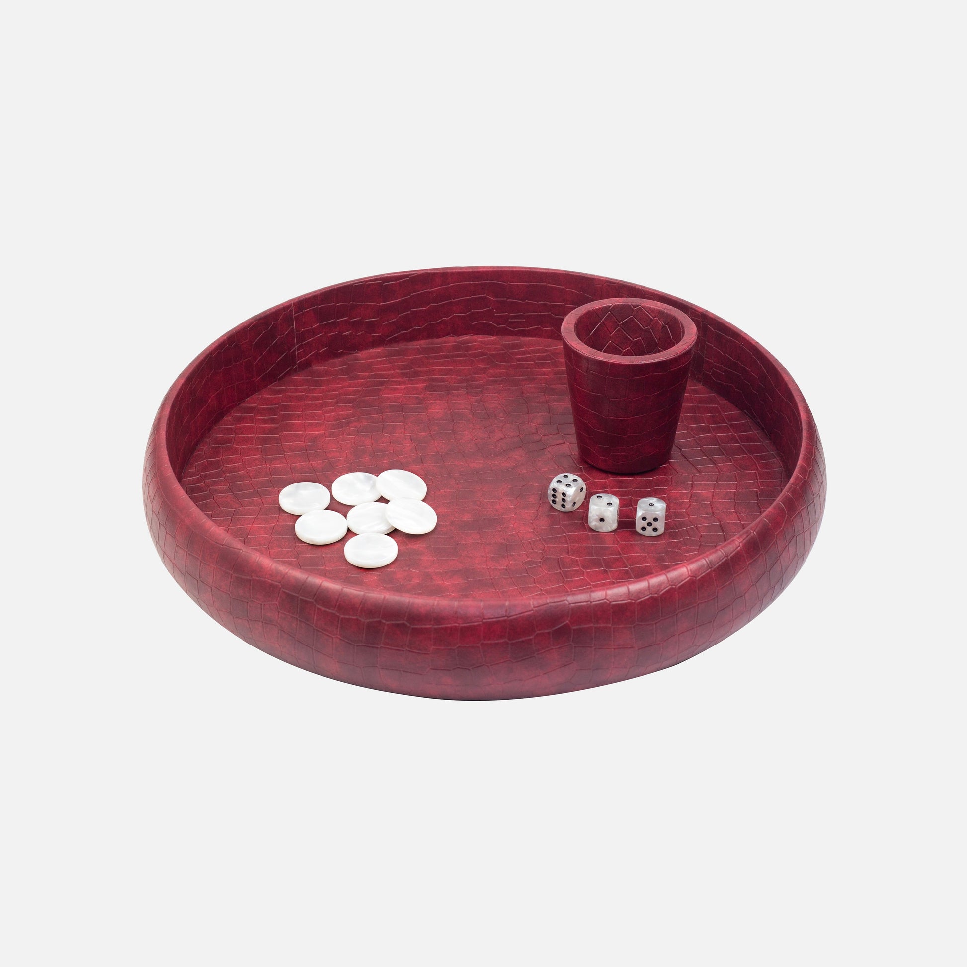 Make every roll luxurious with the Burgundy Crocodile Dice Tray. Its rich burgundy tone and crocodile-embossed vegan leather create a sophisticated accessory for elevated game nights.